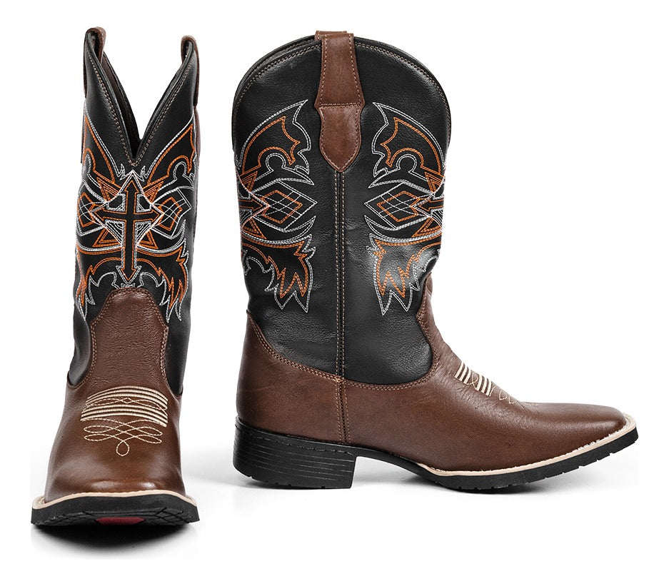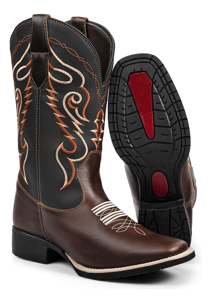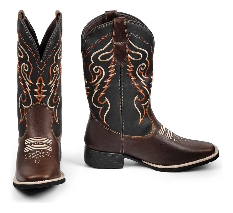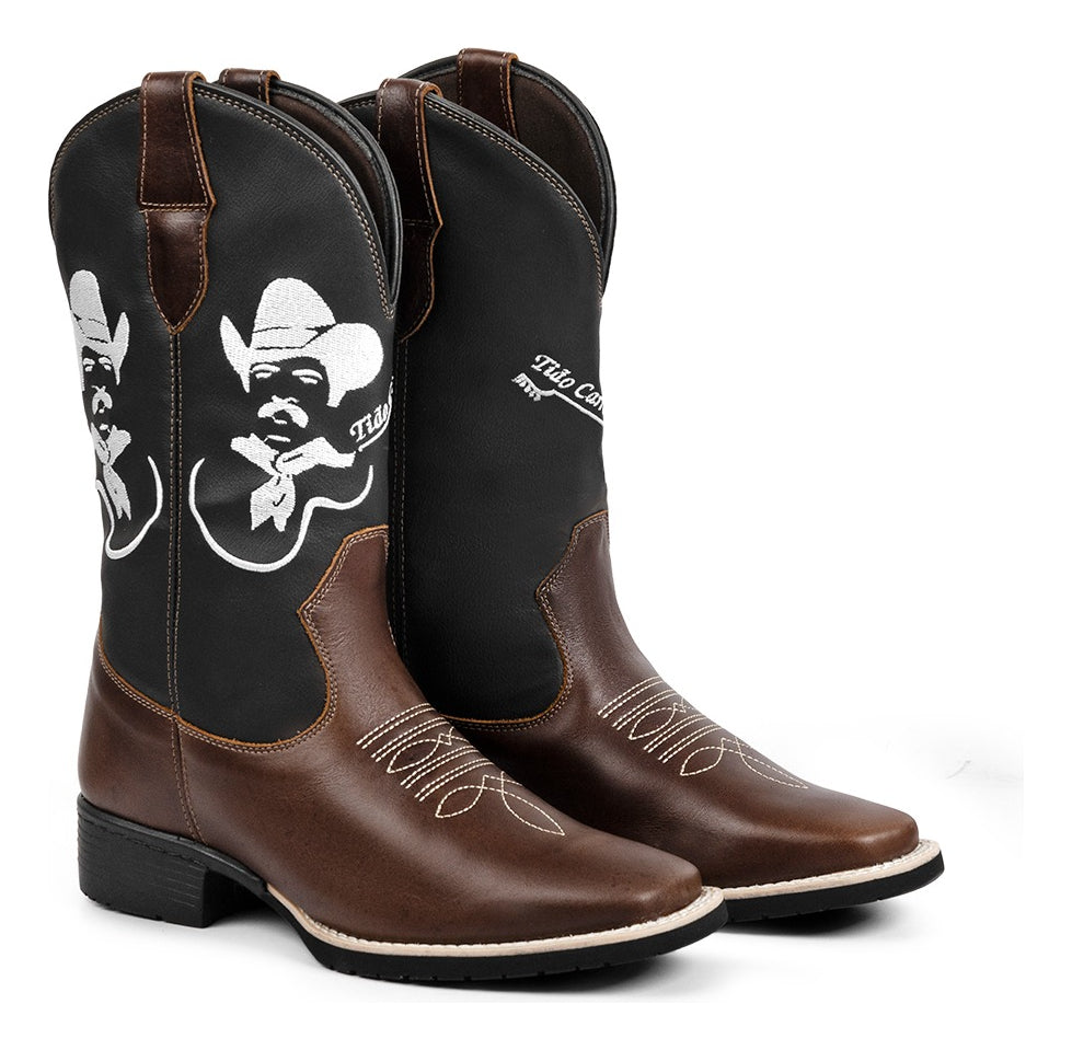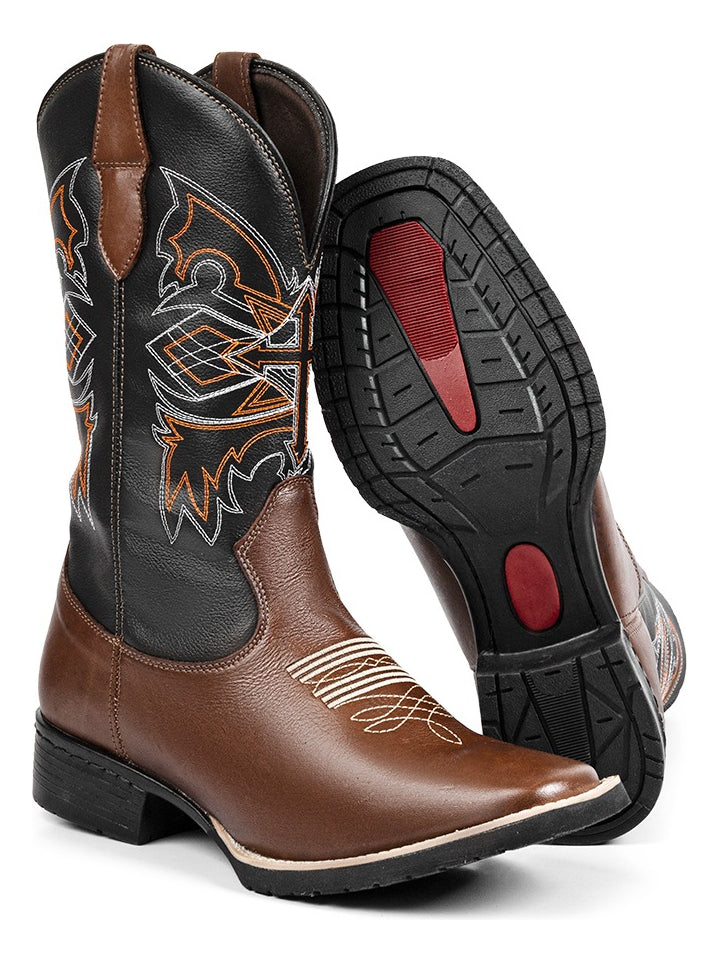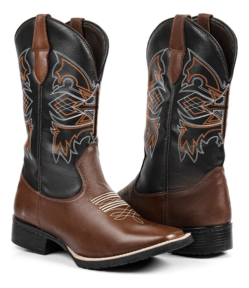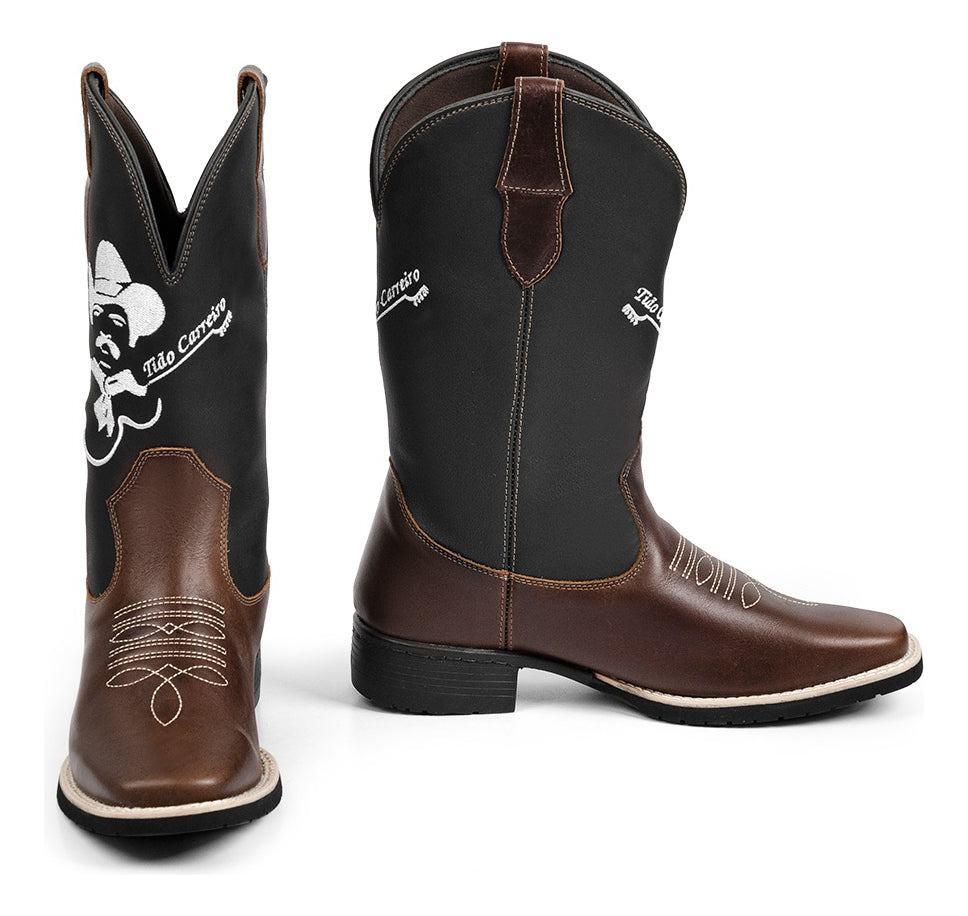 Esta bota texana masculina é fabricada em Franca/SP com couro legítimo, oferecendo design clássico e conforto para uso no campo, rodeios ou na cidade. Com bico quadrado e solado antiderrapante, proporciona durabilidade e segurança em diversas situações.