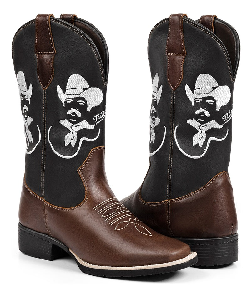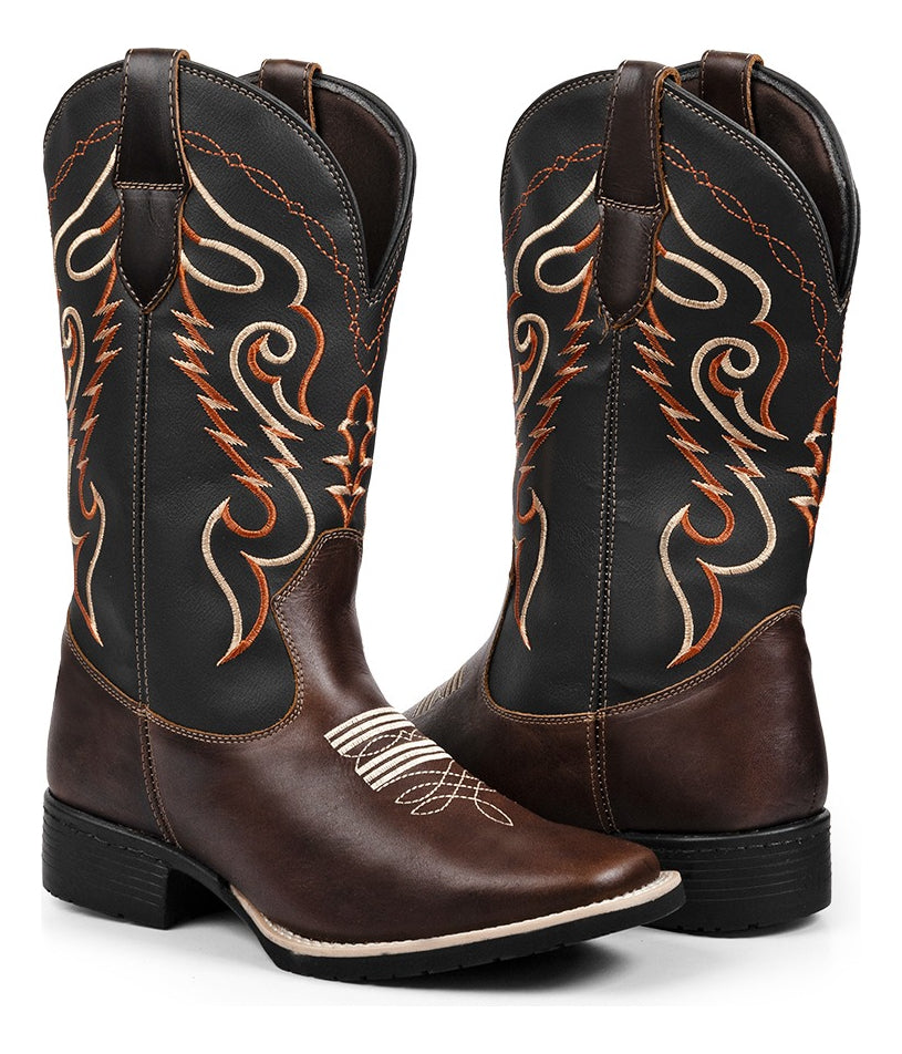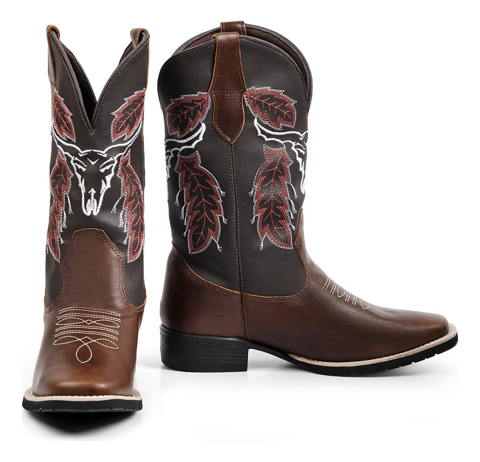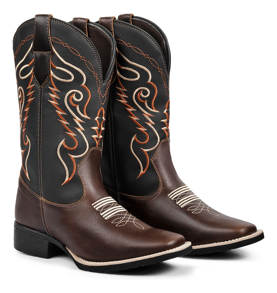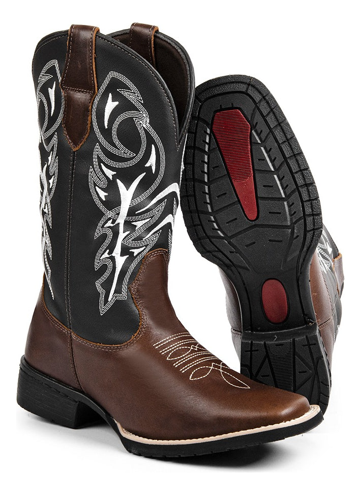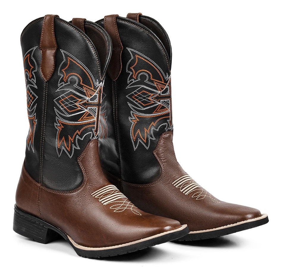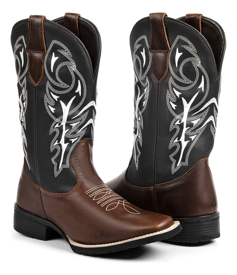 Esta bota texana masculina é fabricada em Franca/SP com couro legítimo, oferecendo design clássico e conforto para uso no campo, rodeios ou na cidade. Com bico quadrado e solado antiderrapante, proporciona durabilidade e segurança em diversas situações.