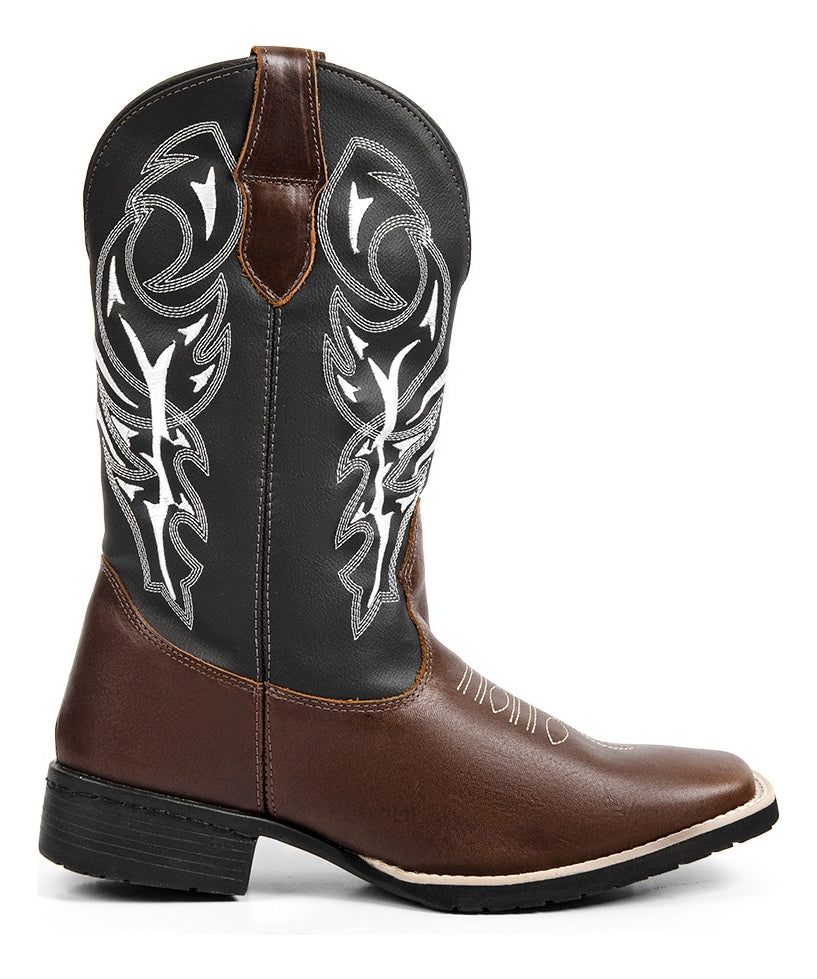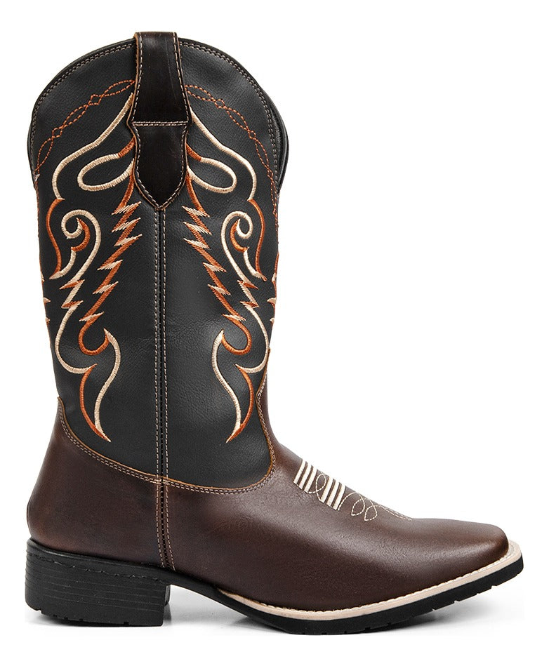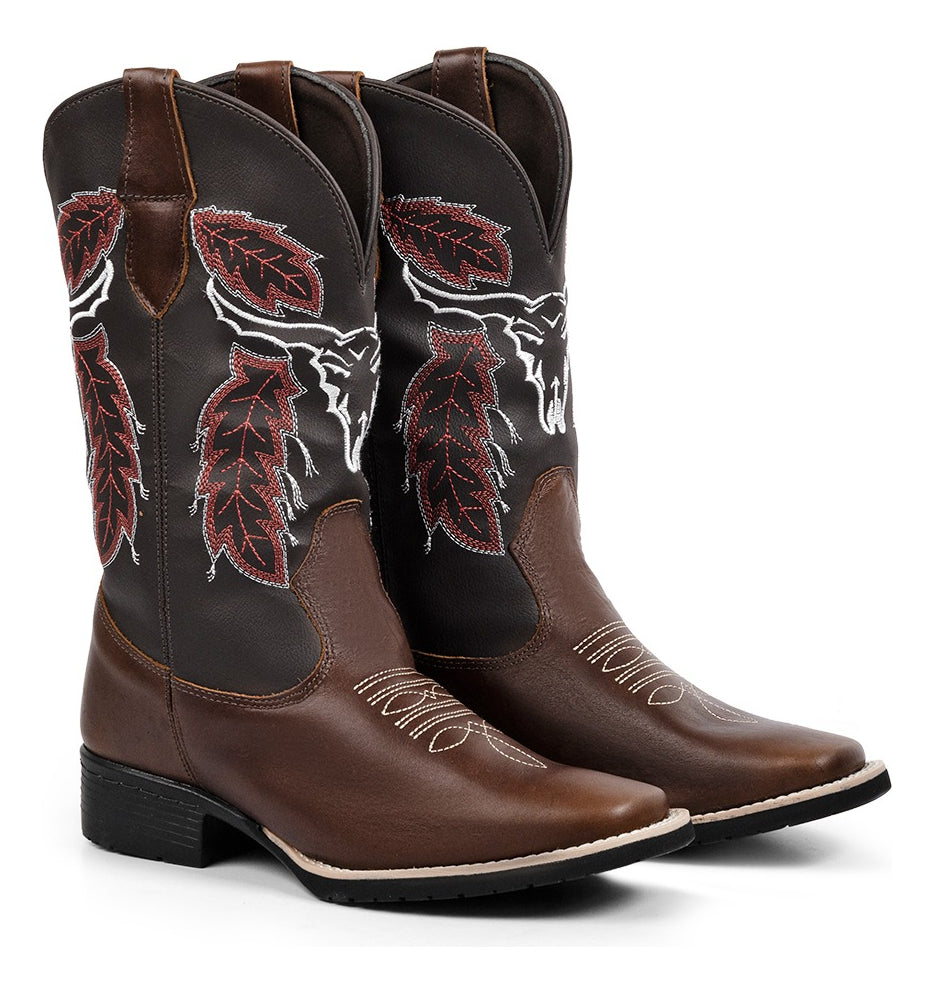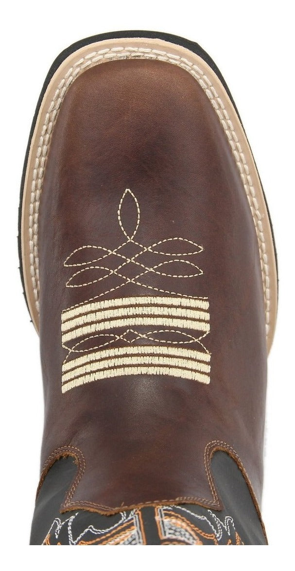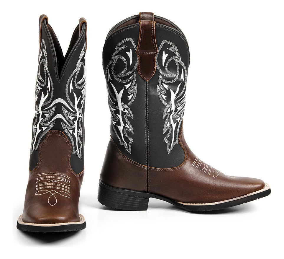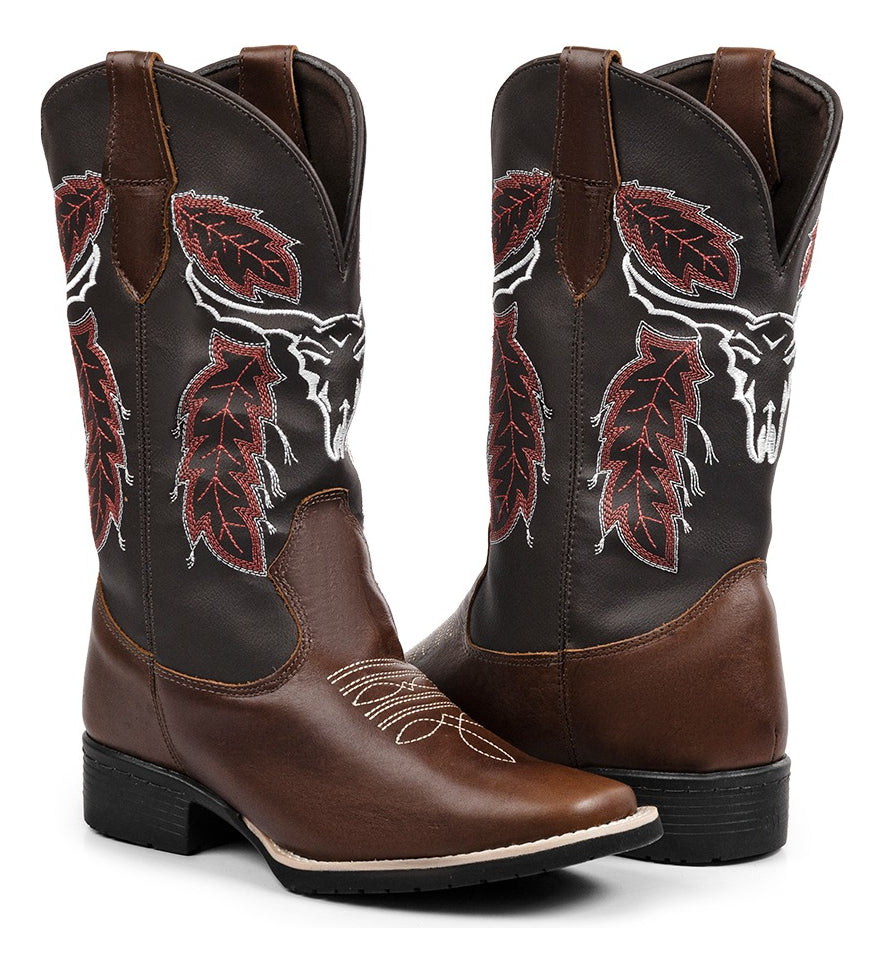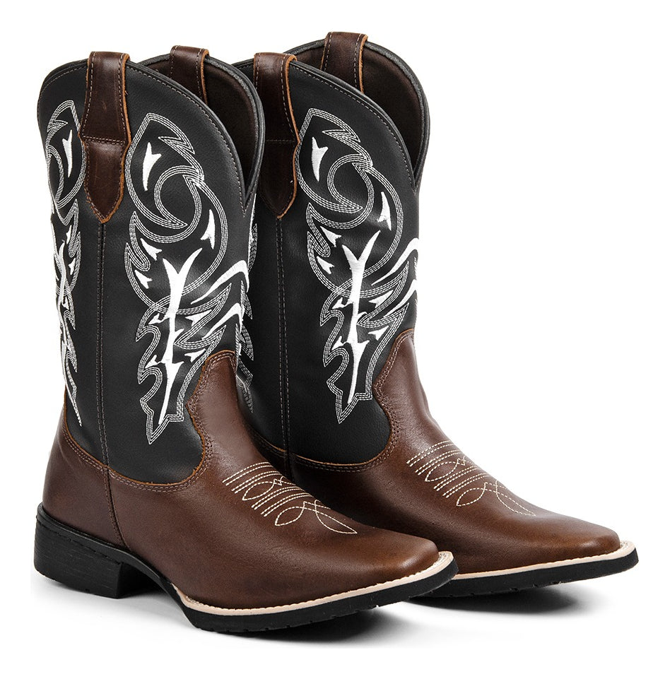 Esta bota texana masculina é fabricada em Franca/SP com couro legítimo, oferecendo design clássico e conforto para uso no campo, rodeios ou na cidade. Com bico quadrado e solado antiderrapante, proporciona durabilidade e segurança em diversas situações.