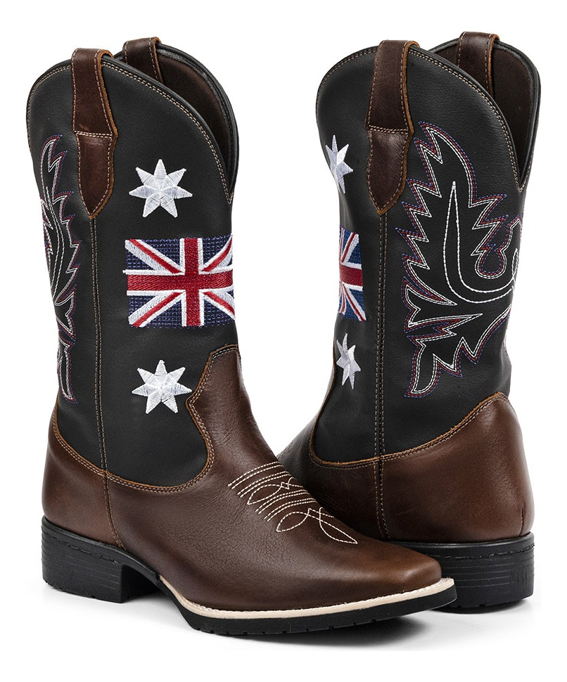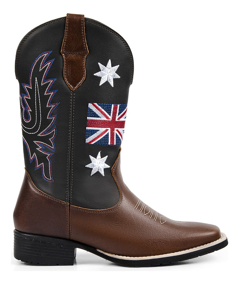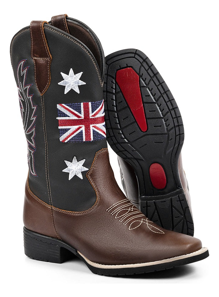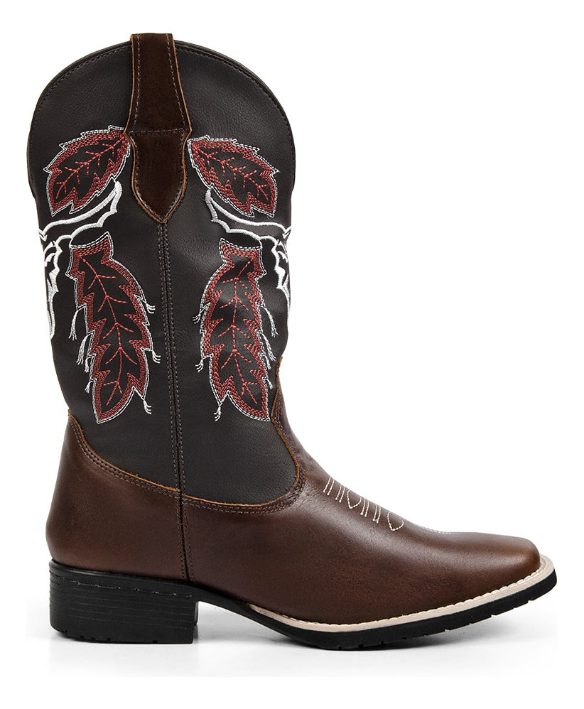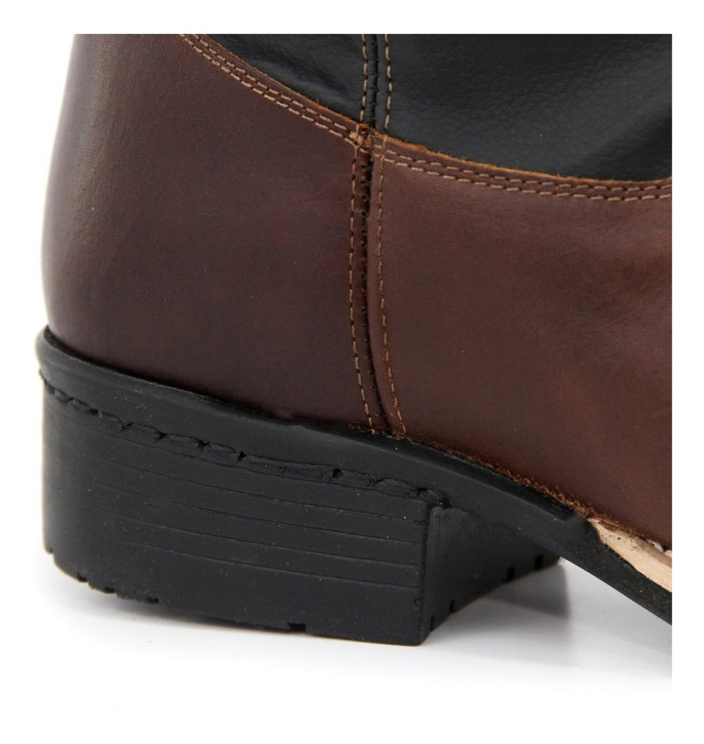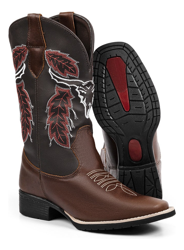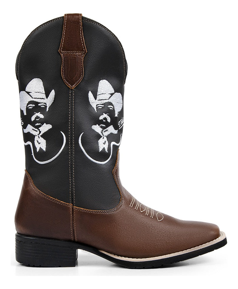 Esta bota texana masculina é fabricada em Franca/SP com couro legítimo, oferecendo design clássico e conforto para uso no campo, rodeios ou na cidade. Com bico quadrado e solado antiderrapante, proporciona durabilidade e segurança em diversas situações.