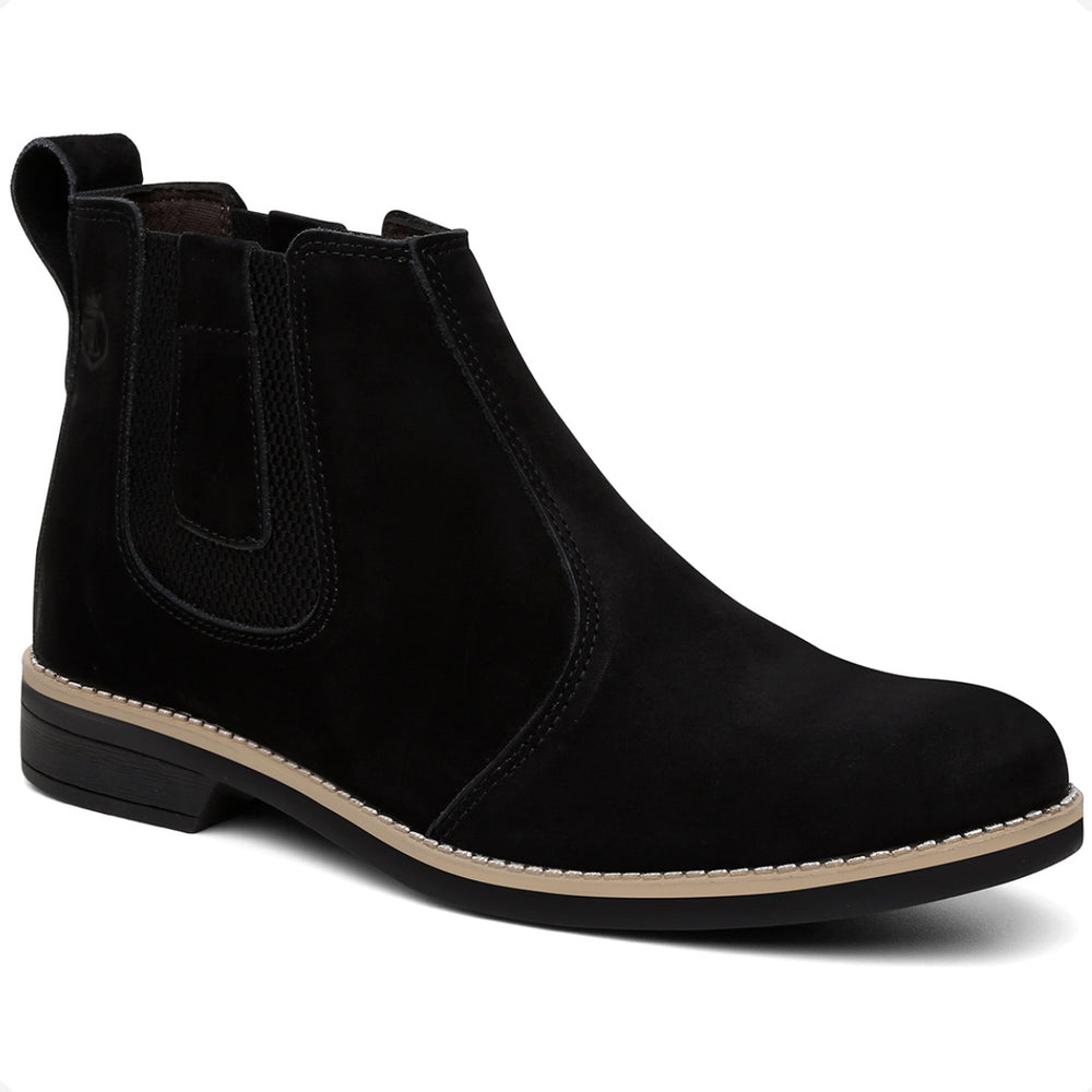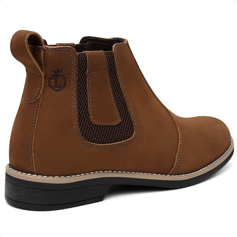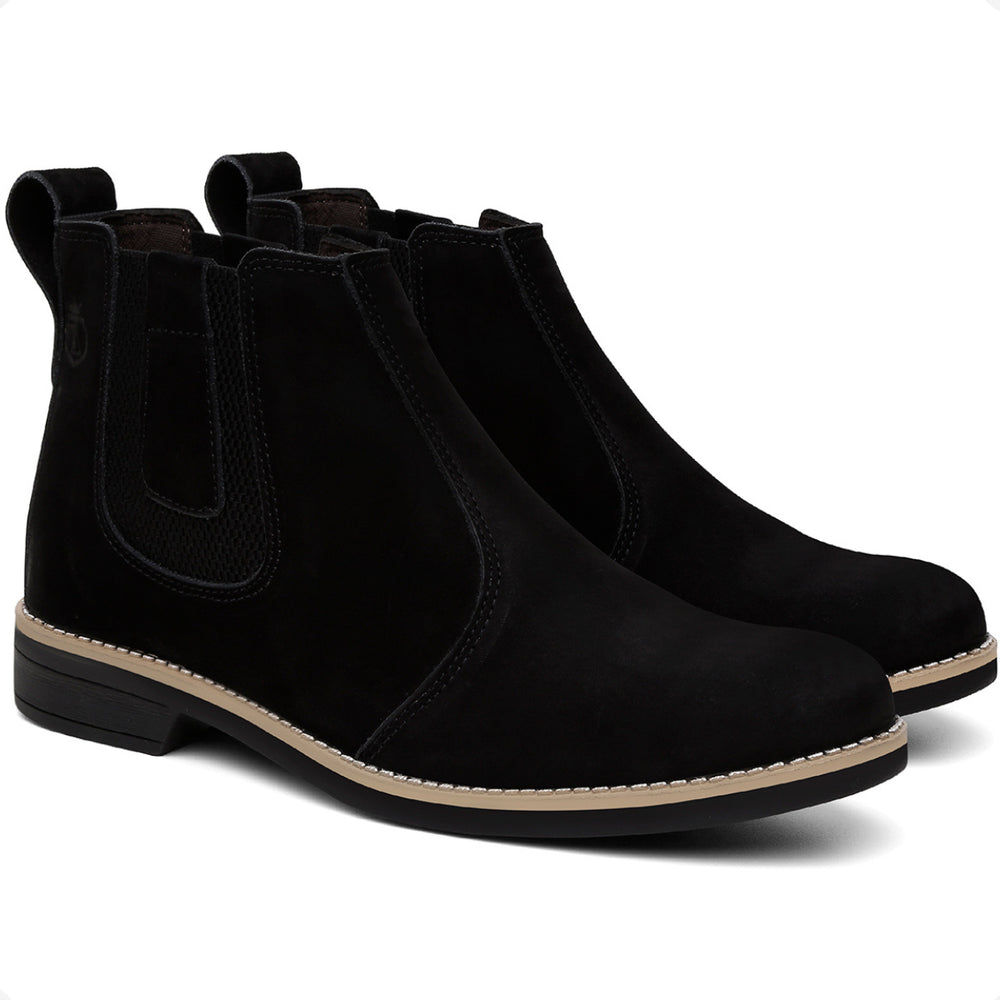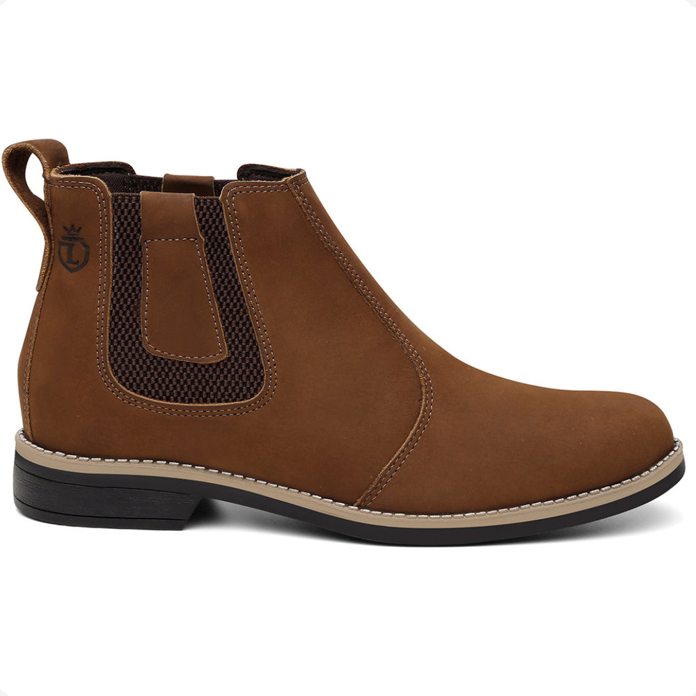 Esta bota botina masculina Chelsea é produzida em couro legítimo natural e oferece conforto avançado com palmilhas em gel com memória, que proporcionam suporte e ajudam na proteção dos pés, coluna e pernas. O solado é resistente, colado e costurado, garantindo durabilidade e segurança em cada passo.