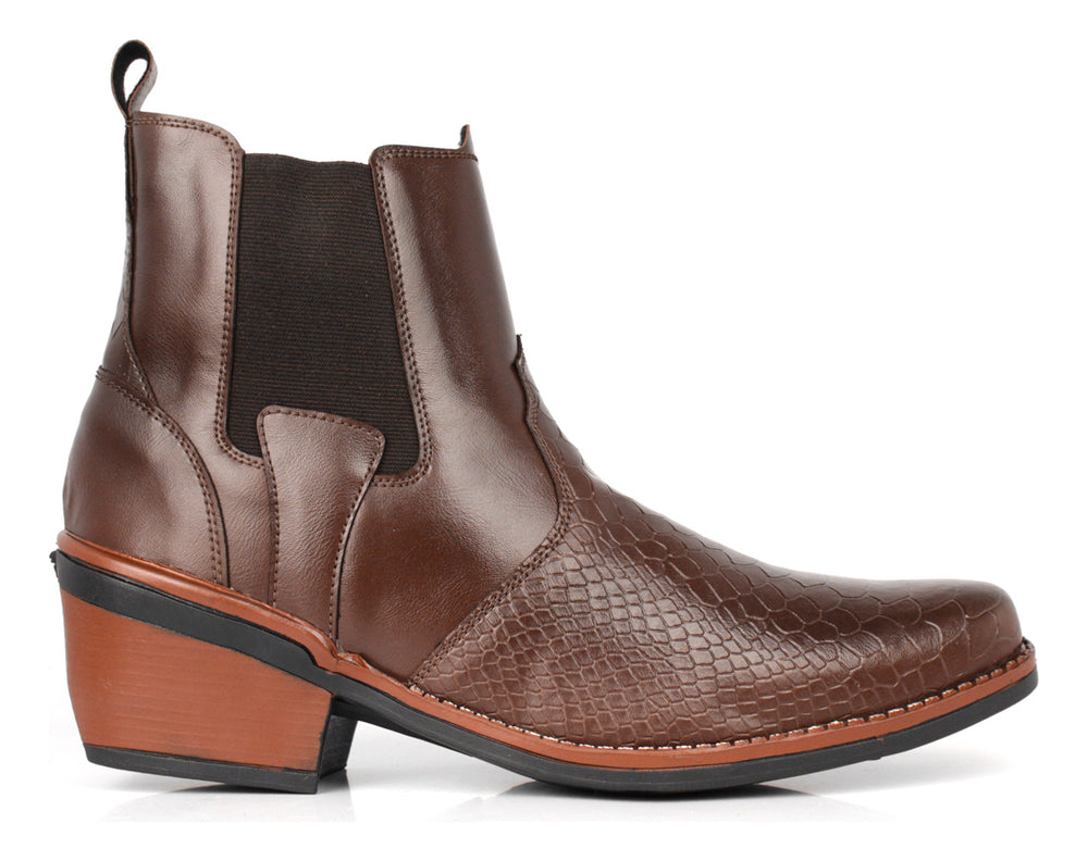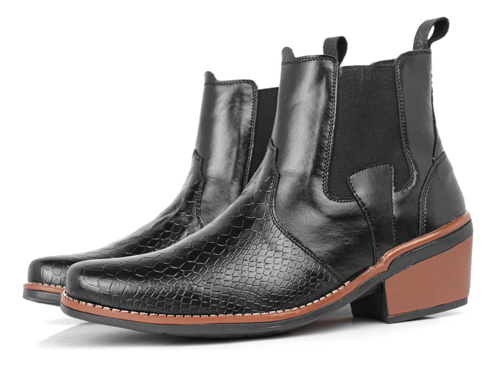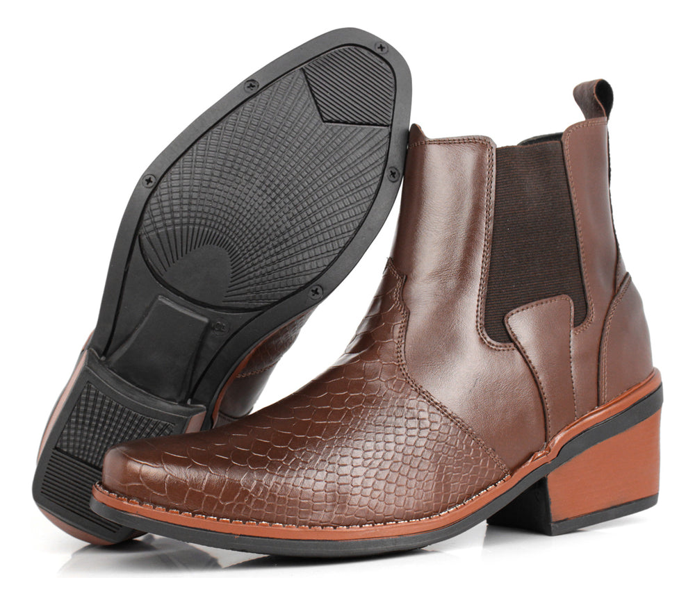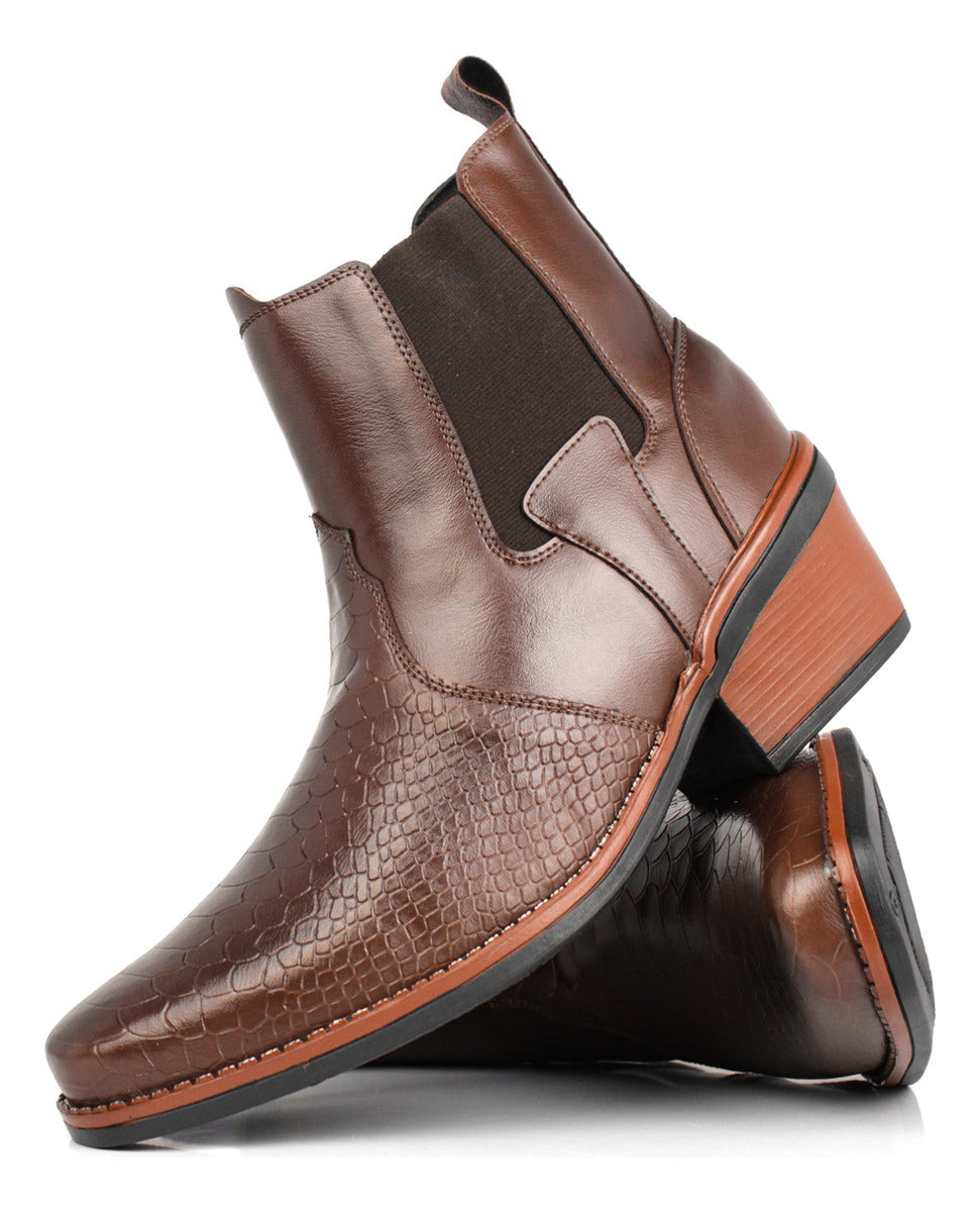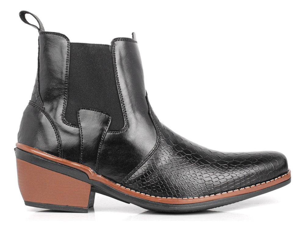 A bota botina jacaré masculina com elástico é um calçado que une durabilidade e sofisticação, ideal para o homem que busca estilo e conforto. Produzida em couro legítimo com textura que imita a pele de jacaré, oferece um design clássico e versátil, adequado para diversas ocasiões do estilo country.