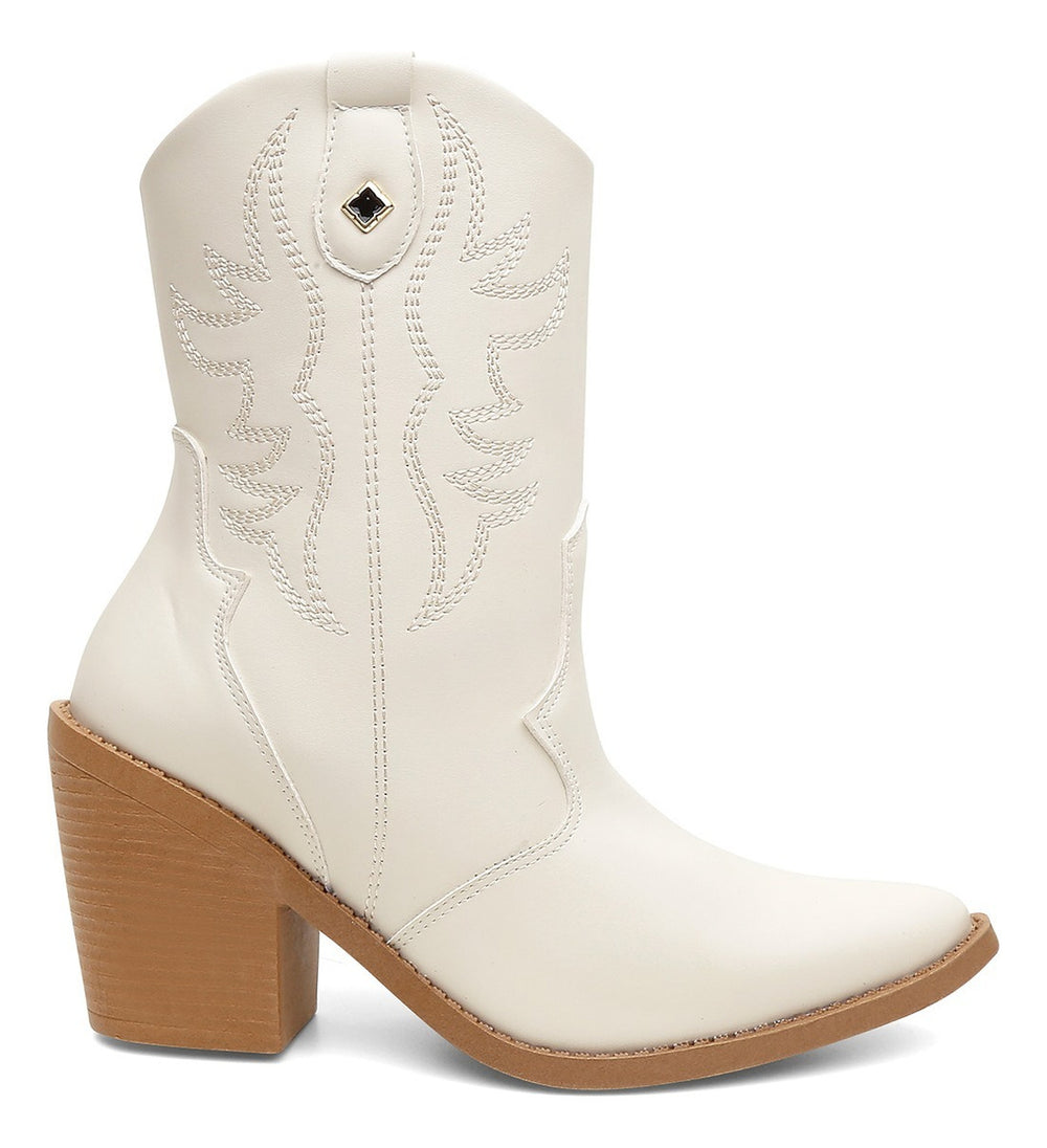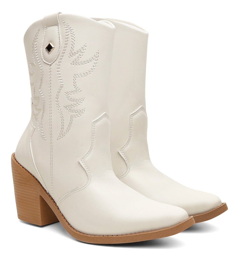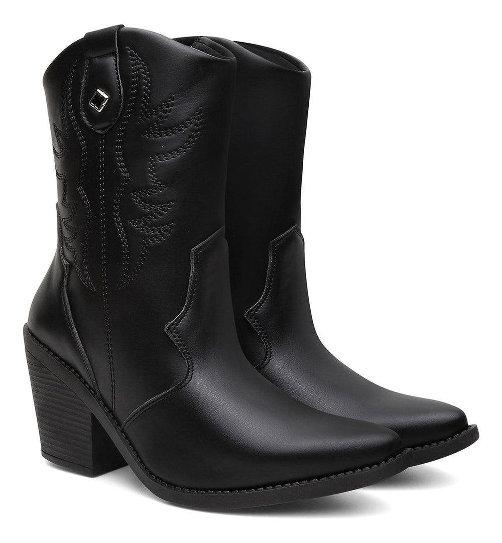 Esta bota country feminina une conforto e estilo com seu design texano de cano médio e bico fino. Produzida com materiais selecionados, ela é ideal para quem busca um calçado versátil que complementa looks casuais e fashionistas dentro da moda western.