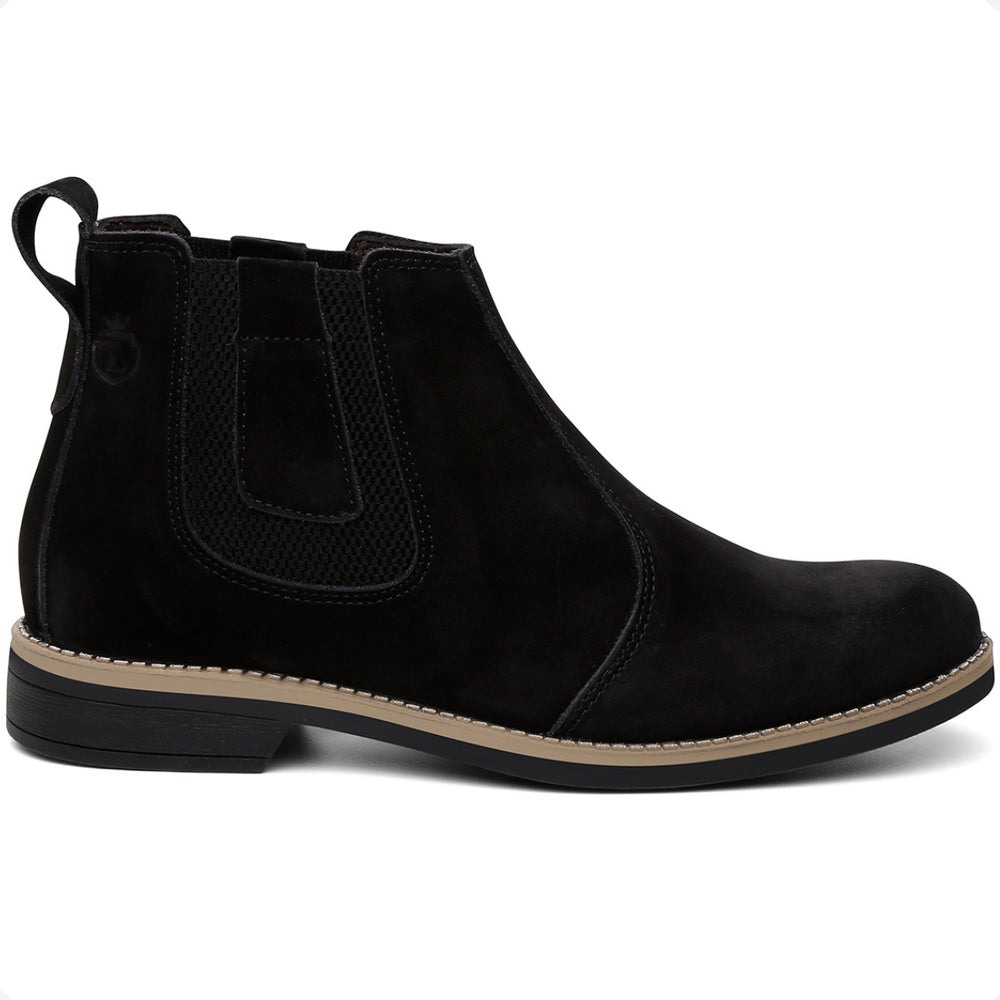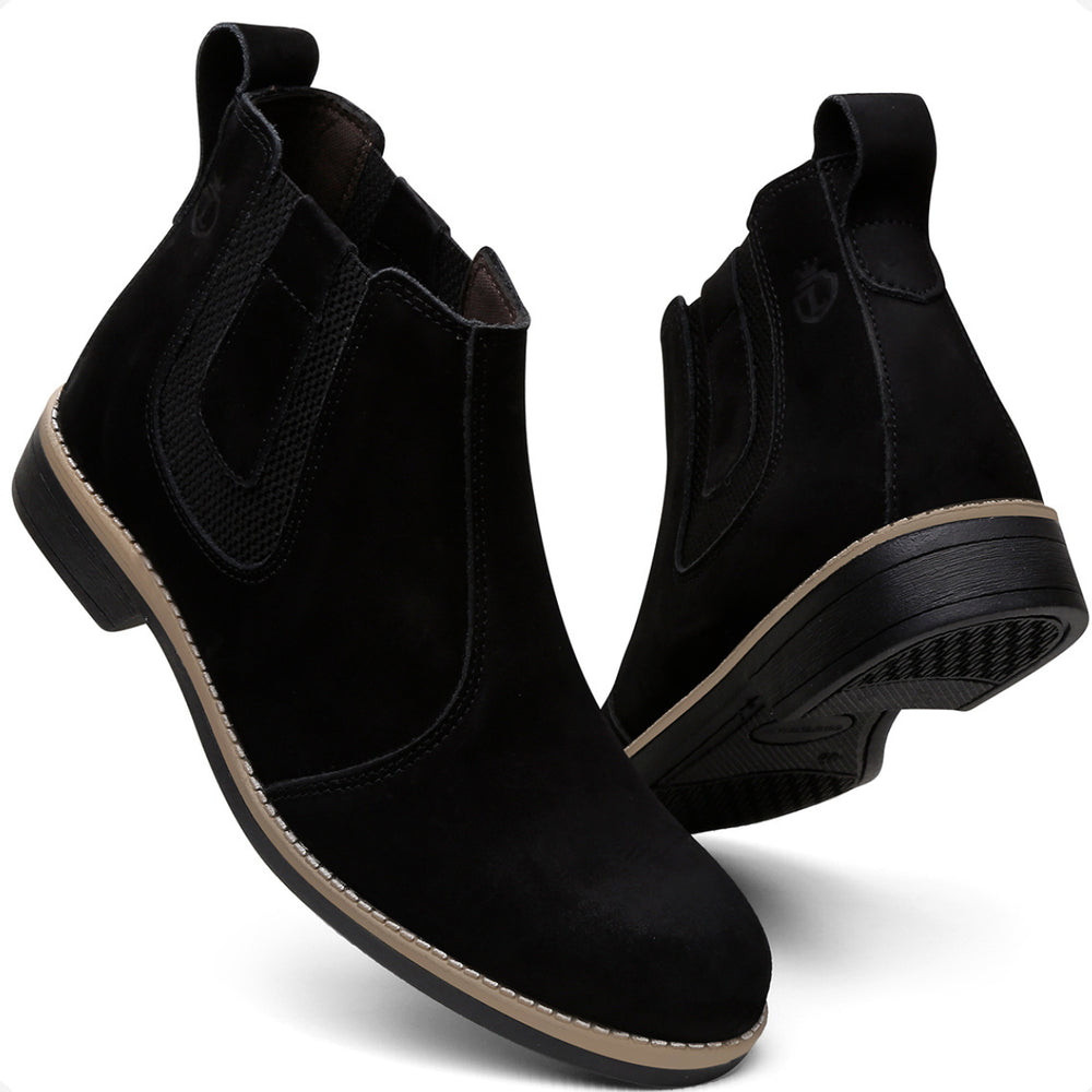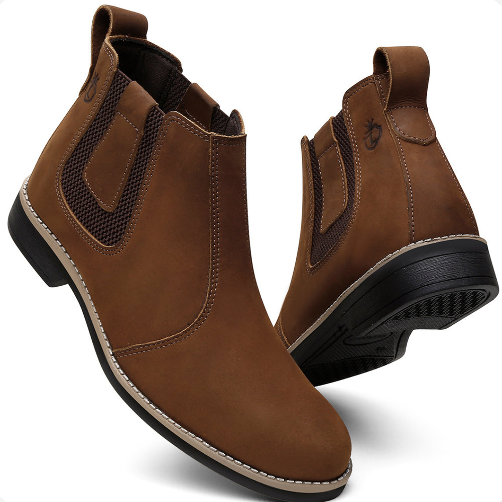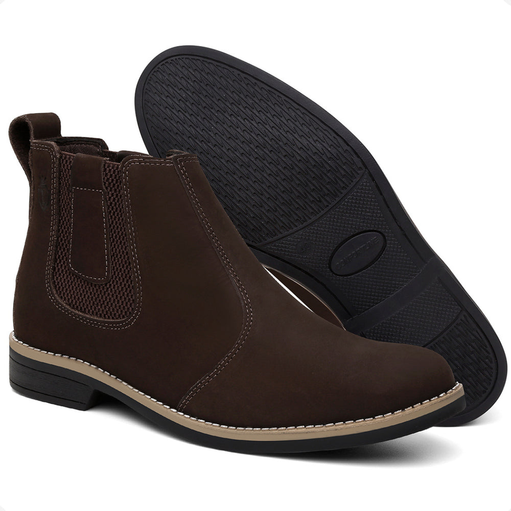 Esta bota Chelsea masculina é confeccionada em couro legítimo com acabamento em nobuck, oferecendo sofisticação e conforto para o dia a dia. Com palmilha em gel e solado resistente, é a combinação ideal para quem busca estilo aliado à durabilidade.
