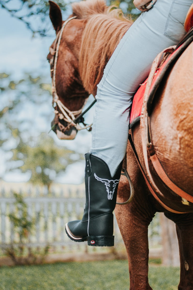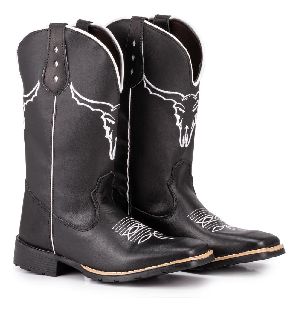 A Bota Texana Masculina Country Bico Quadrado Couro Boi Black é confeccionada em couro legítimo de alta qualidade, com detalhes que garantem conforto e durabilidade. Seu design clássico e robusto é ideal para quem busca autenticidade e estilo no universo country.