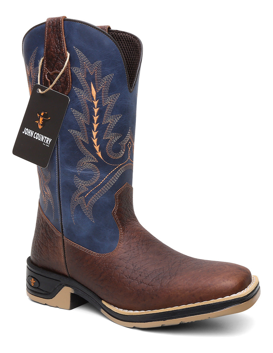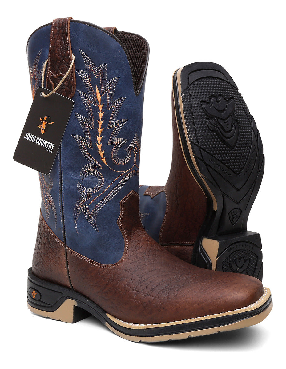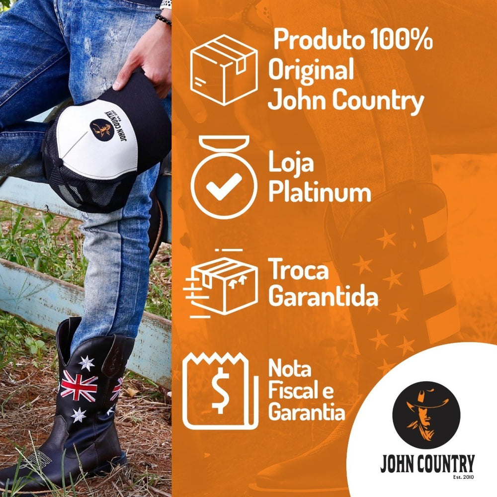 A Bota Texana Masculina John Country é confeccionada em couro legítimo, unindo tradição e qualidade da marca originária de Franca, SP. Com design que valoriza o estilo western, oferece conforto e resistência, ideal para quem busca autenticidade e durabilidade em calçados country.