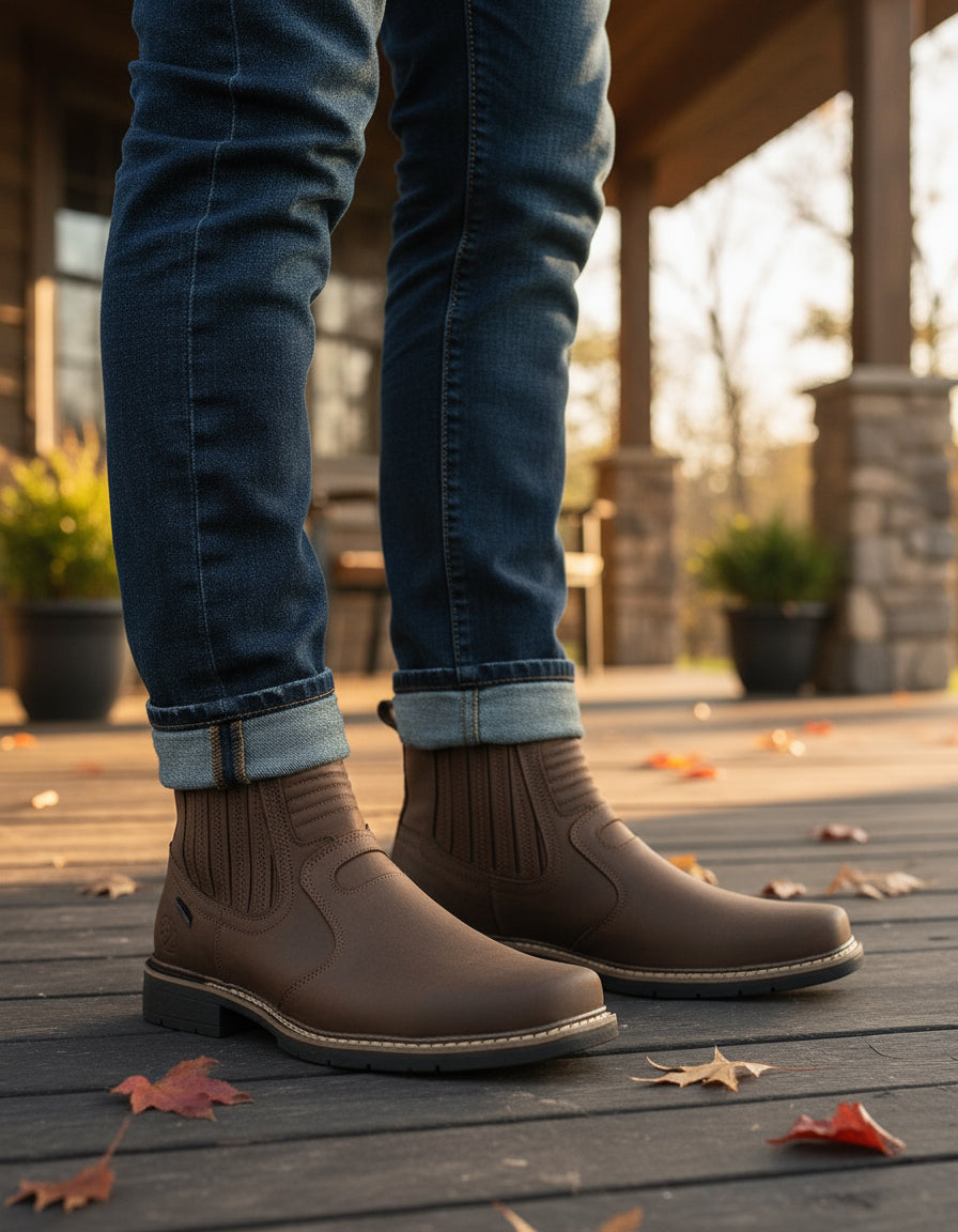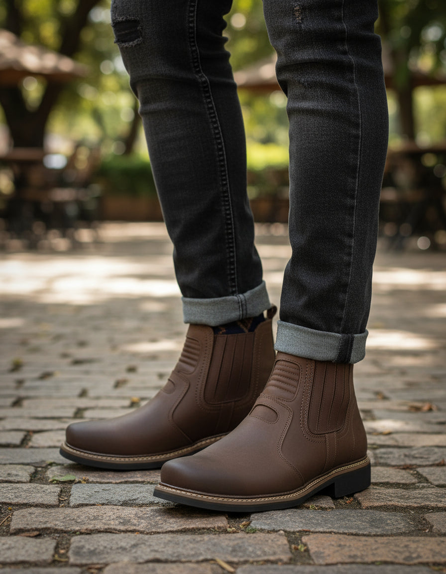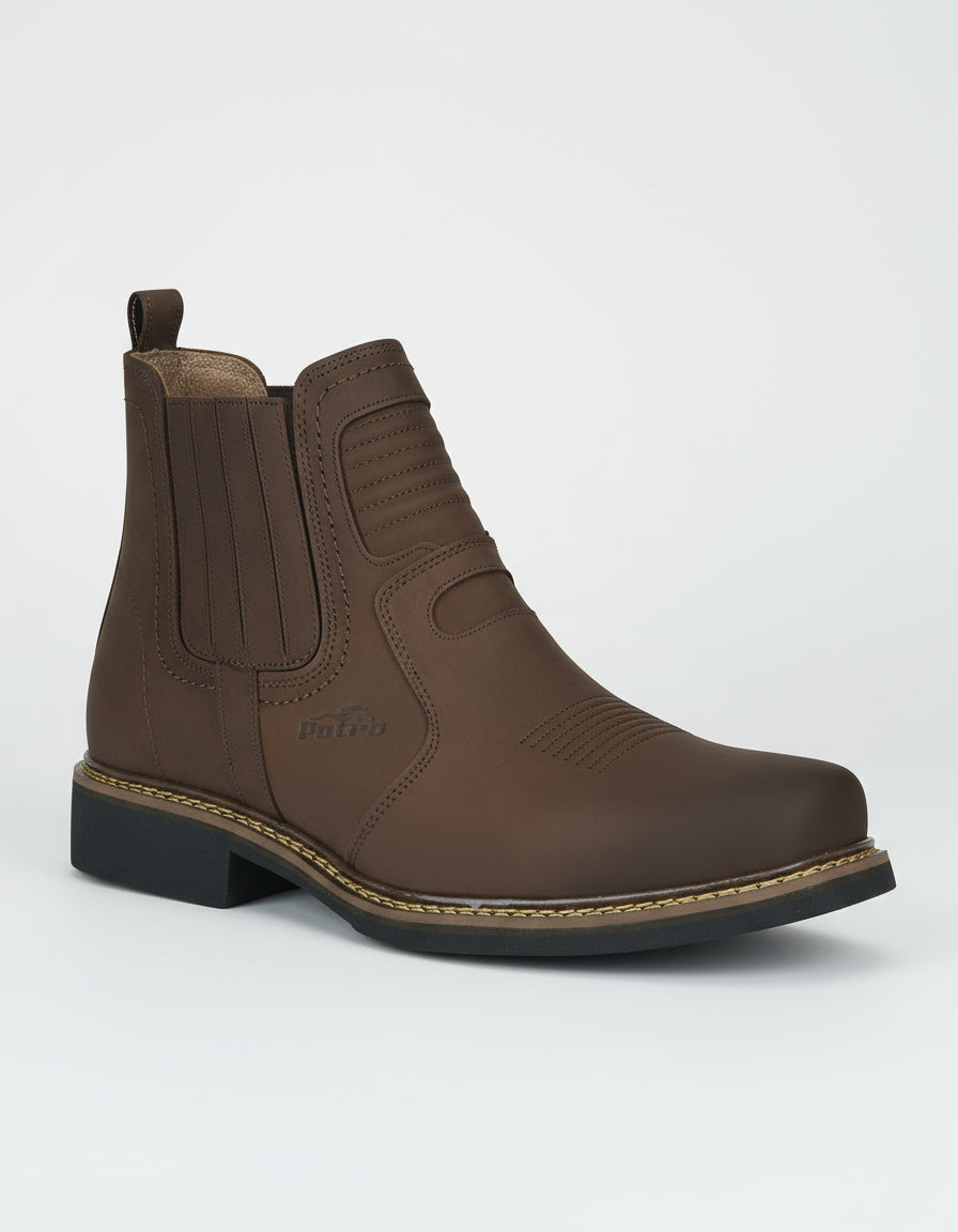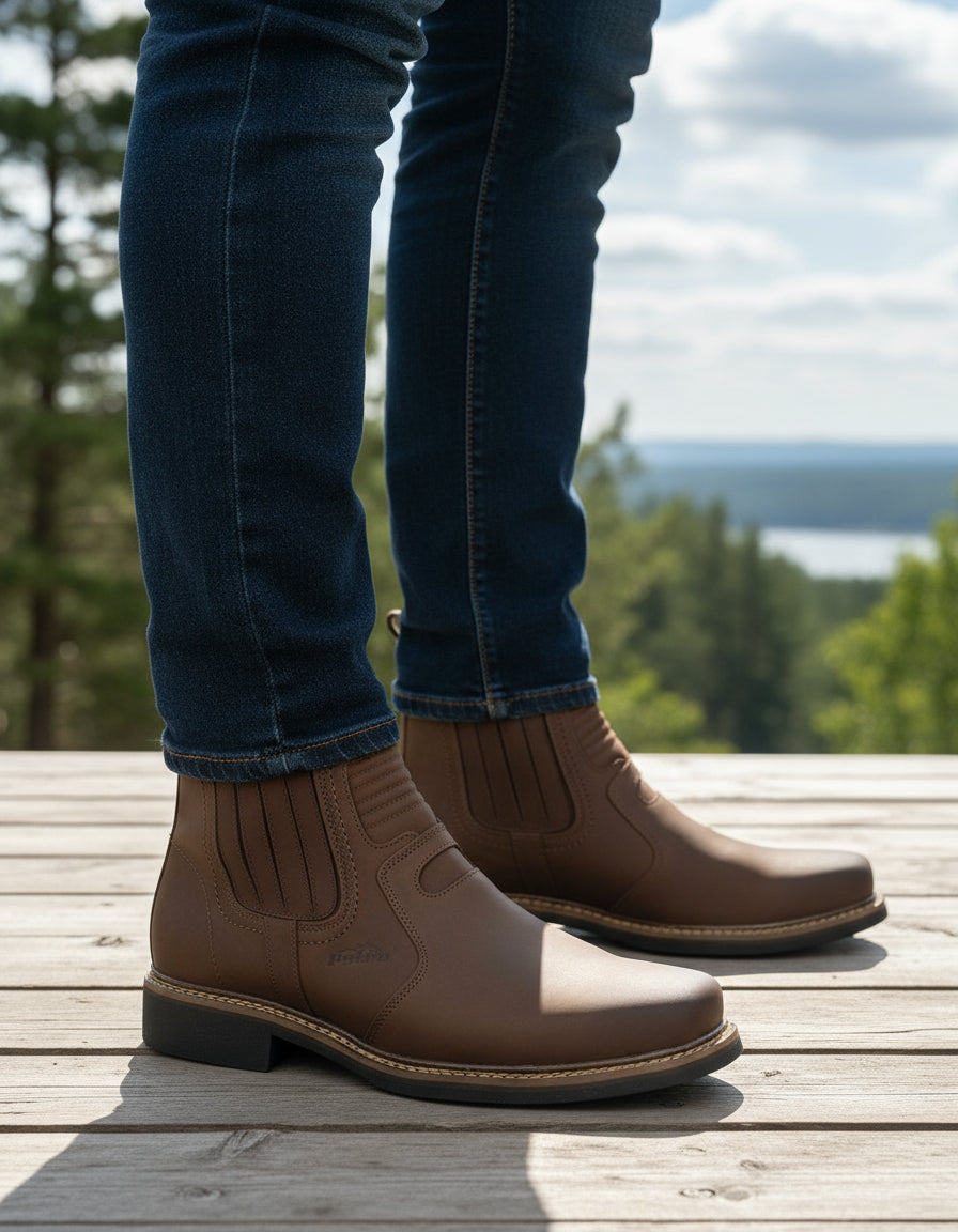 Esta botina masculina Cerrado Rancheira 227 é confeccionada em couro bovino legítimo, oferecendo resistência e elegância rústica. Seu design moderno com bico quadrado proporciona conforto e praticidade para o uso diário, atendendo às necessidades do homem que valoriza estilo e durabilidade.