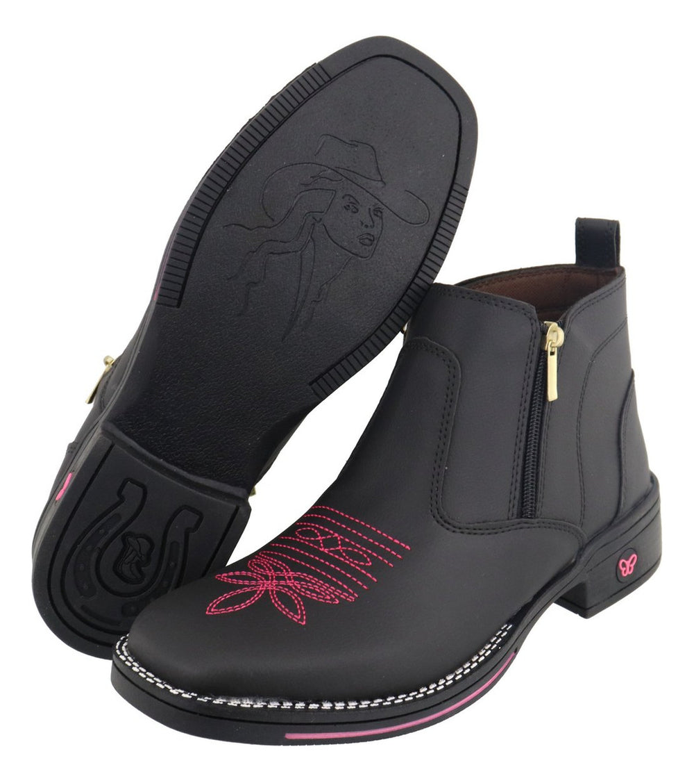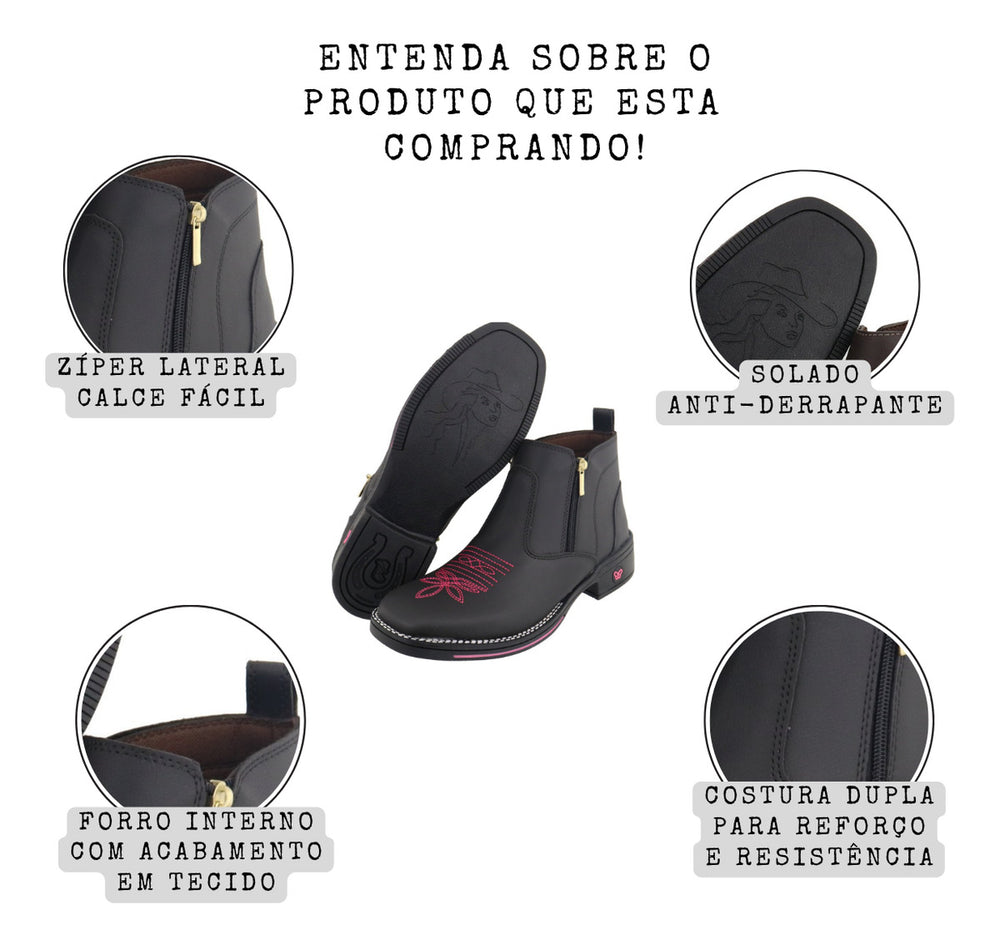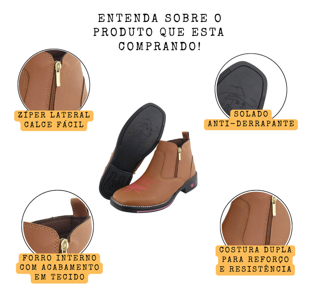 A Botina Feminina com zíper lateral oferece praticidade e conforto sem abrir mão do estilo country moderno. Com design médio e detalhes bordados, é ideal para o dia a dia, garantindo segurança com seu solado antiderrapante e conforto com palmilha em EVA.