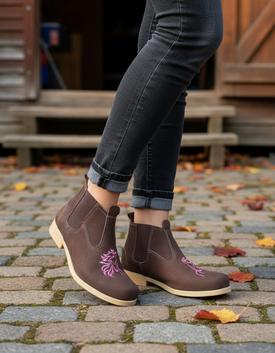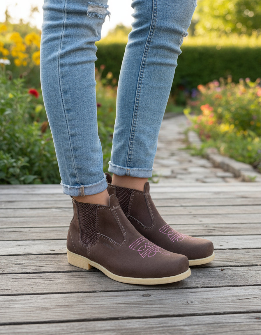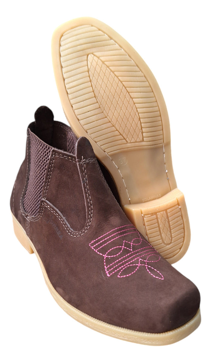 A Botina Feminina Country Couro Legítimo Cano Curto Rodeio une estilo clássico do universo country com conforto e durabilidade. Produzida em couro nobuck, apresenta design versátil e salto baixo, ideal para uso diário em diversas ocasiões.