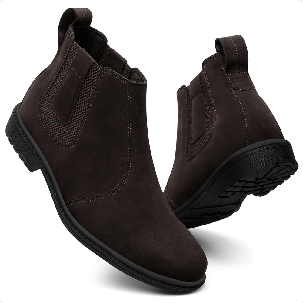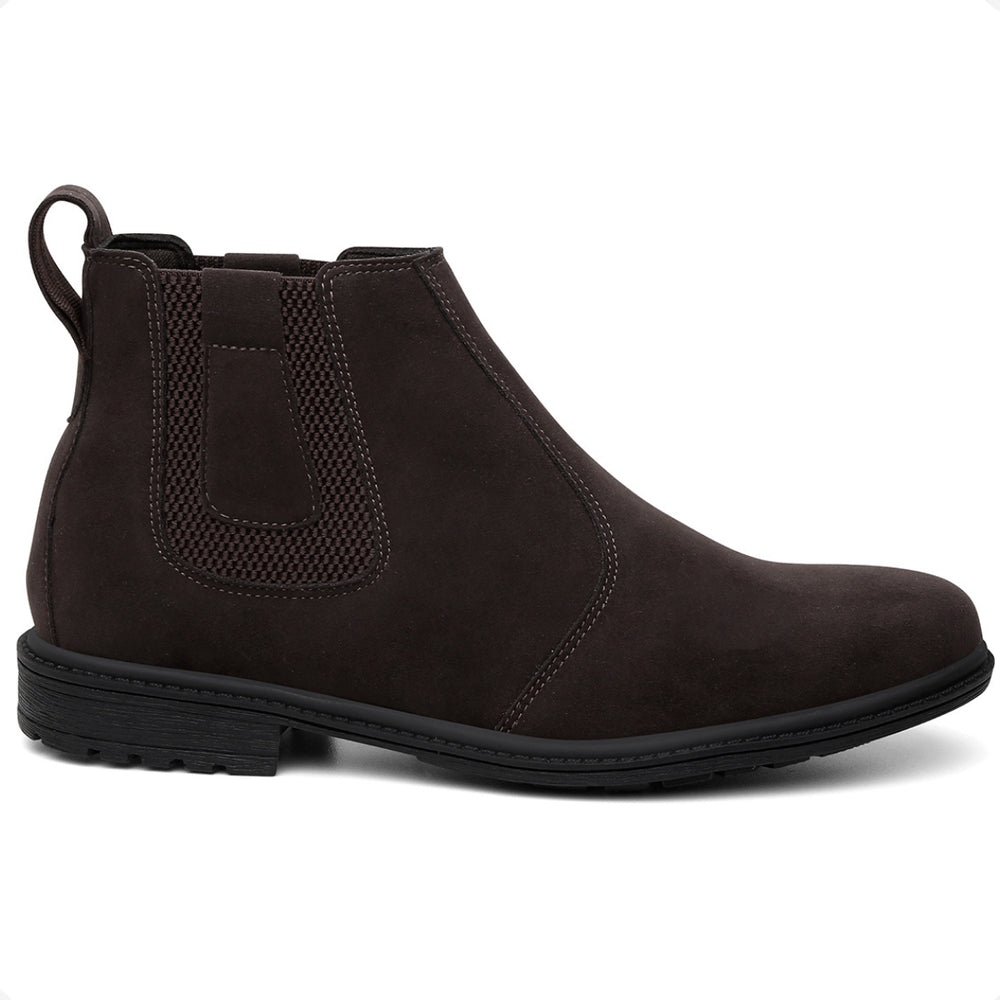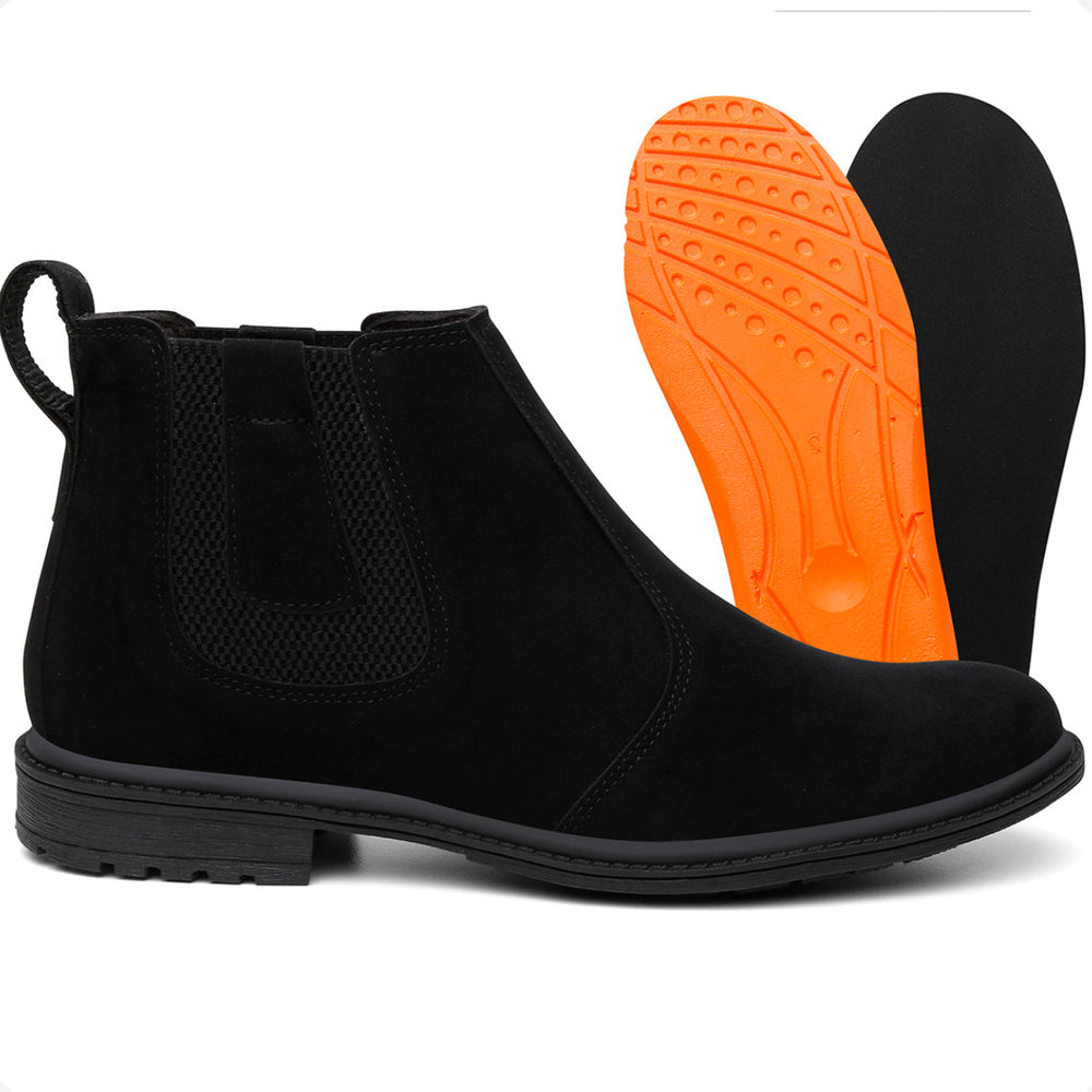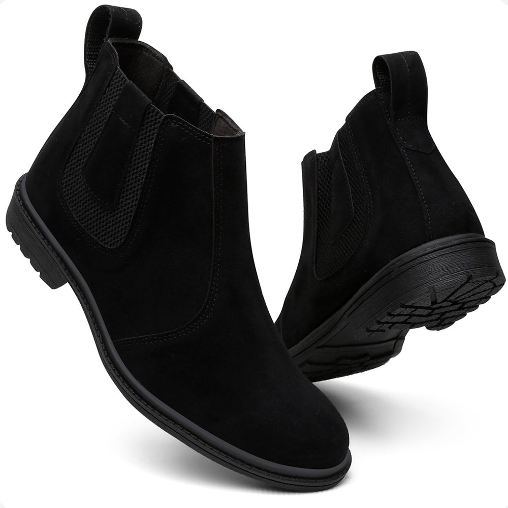 Esta botina masculina Chelsea combina o estilo clássico com conforto e sofisticação. Produzida em couro camurça macio e tratado, apresenta design leve e solado com costura bloqueada que garante maior resistência. Ideal para quem busca elegância e suporte para os pés durante o uso diário.