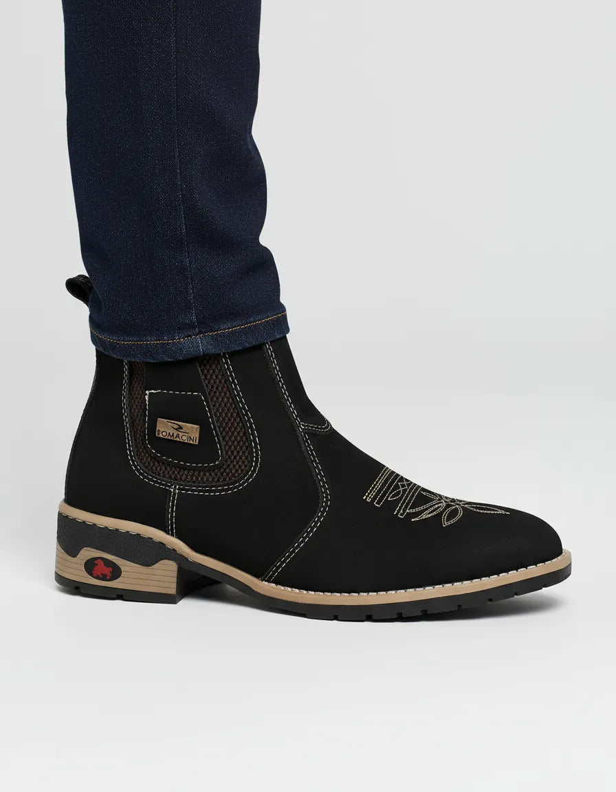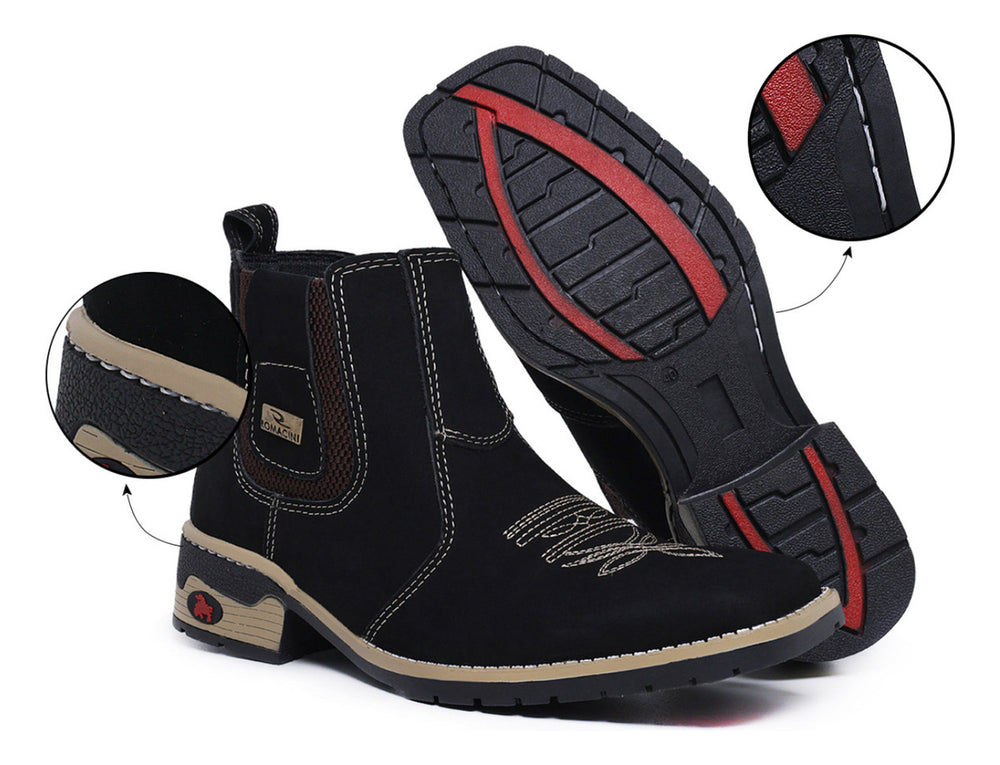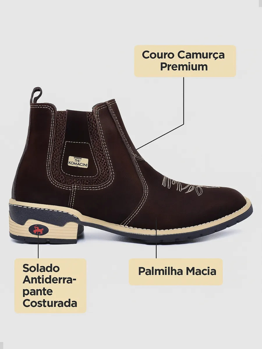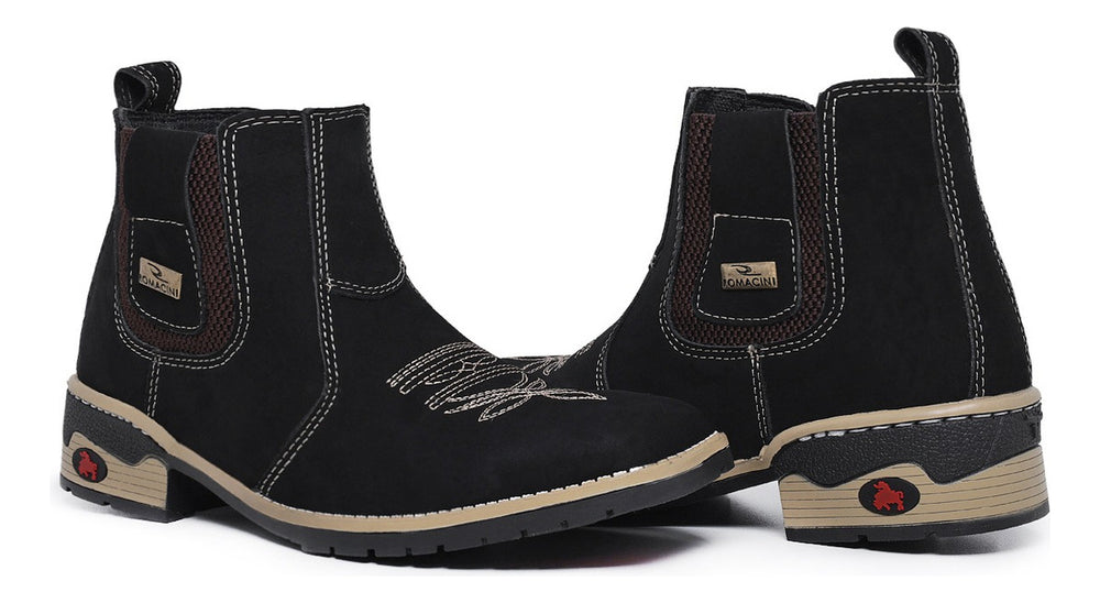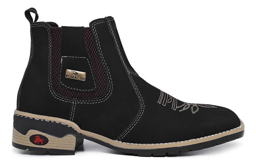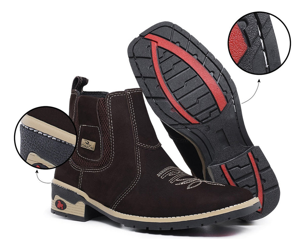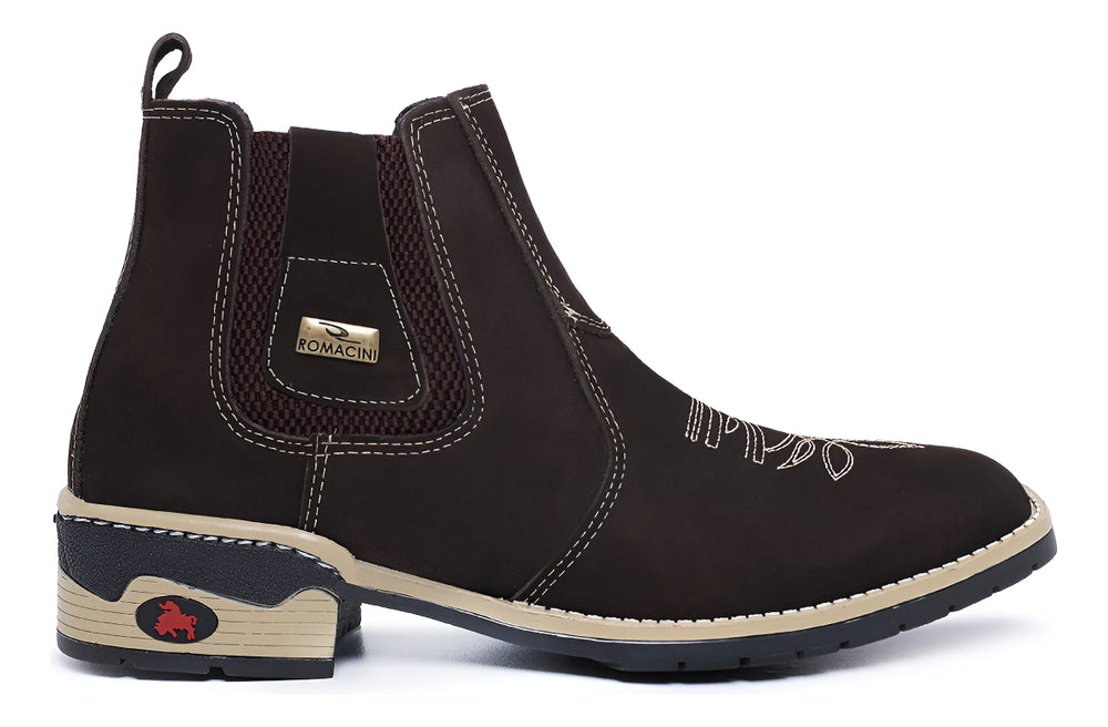 A Botina Texana Masculina da Campeira, confeccionada em couro nobre, é a união perfeita de estilo e conforto para o homem que aprecia a vida country. Com um design robusto e elegante da marca Romacini, oferece durabilidade e um toque autêntico para diversas ocasiões, do casual ao formal. Seu solado costurado garante segurança e estabilidade em cada passo, tornando-a ideal para o dia a dia.
